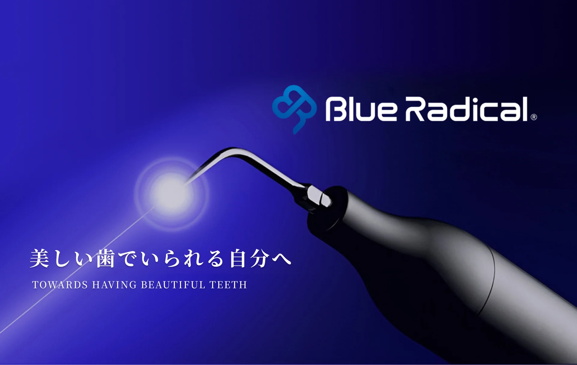 ブルーラジカルは、厚生労働省から歯周病医療機器として認定されています。過酸化水素水を使用しますが、その分解により発生する活性酸素が、、口腔内の細菌に作用するため副作用のリスクが極めて少ないのが特徴です。